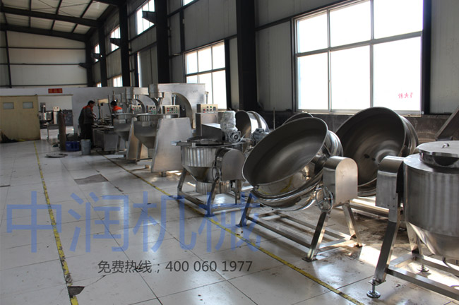 本產品利用蒸汽加熱技術,溫度可達137攝氏度,采用一次沖壓成型的半球形不銹鋼進口鍋體,攪拌方式為行星攪拌,依據地球自轉和公轉的原理,奇特的不整數傳動比,使得鍋內攪拌均勻,無死角。先進的傳動和密封結構利于鍋內的干凈,衛生,不易糊鍋,不粘鍋。 車間現場